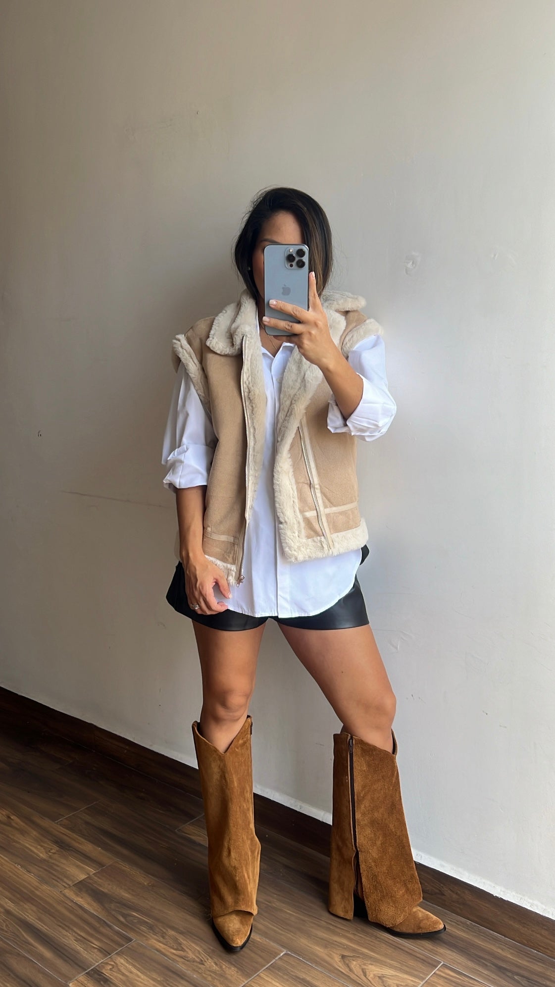 Chaleco disponible en tres colores con cuello y borrega en el interior.